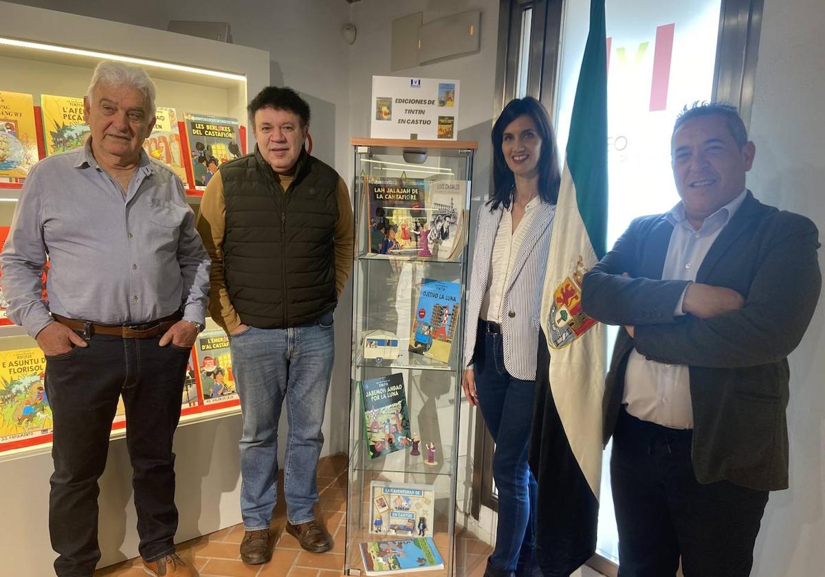Este pasado martes lo presentaban en su inauguración el propio Juan Manuel Manzano (tintinófilo), que estuvo acompañado por el coordinador/gestor en funciones del MUVI, Jose López Vázquez, la concejala de Cultura, Miriam García Cabezas, y quien se encargó de traducir al castúo «Las Joyas de la Castafiore», José Sánchez del Viejo.