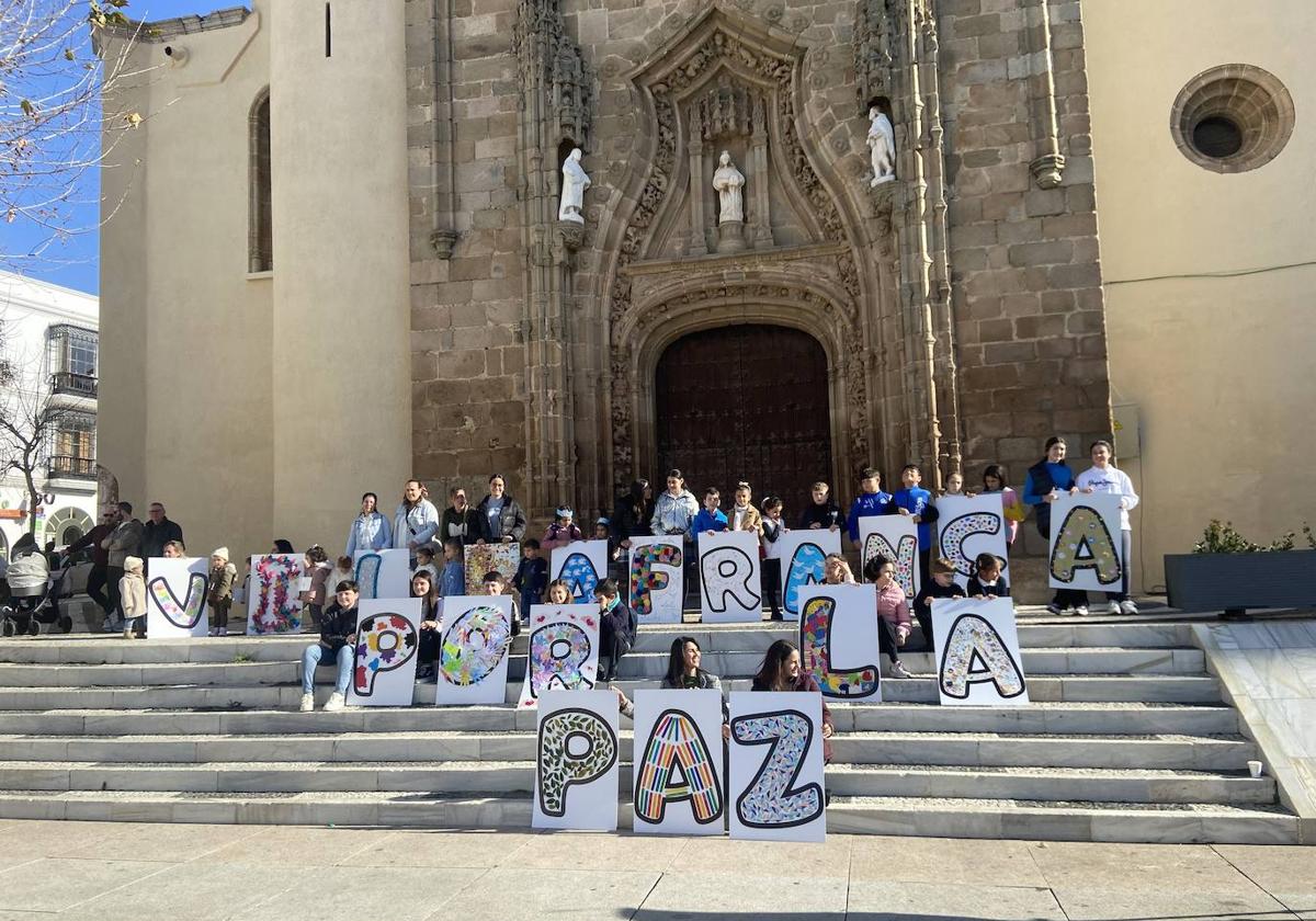 Más de 300 escolares de Villafranca de los Barros se reunían en la mañana de ayer en la Plaza del Corazón de María para celebrar el Día de la Paz y la No Violencia. Una actividad promovida por el Ayuntamiento de Villafranca de los Barros y las concejalías de Educación, Igualdad y Cooperación, Deporte, Infancia y Familia, así como el Programa de Prevención con Familias y Menores en Riesgo (PROPREFAME).