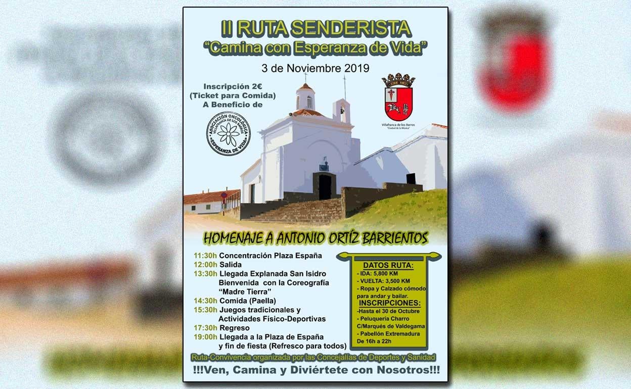 Las concejalías de Deportes y Sanidad han organizado la segunda edición de la ruta senderista 'Camina con esperanza de vida'. Será también un homenaje a Antonio Ortiz Barrientos, educador del Colegio San José y corresponsal de HOY en la localidad, fallecido el pasado día 8.