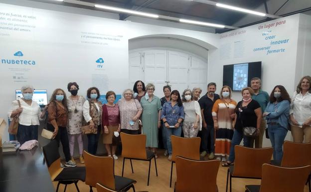 Así, el collar estuvo compuesto por lectores «nubetecos» (lectores digitales) que se convirtieron en «libros humanos» para conversar con los lectores asistentes. Consoli Delgado Tolosa, María Lara, María Isabel Mañero Mancera y María Hinojosa Mesa conversaron e intercambiaron experiencias lectoras con los lectores del club de lectura.