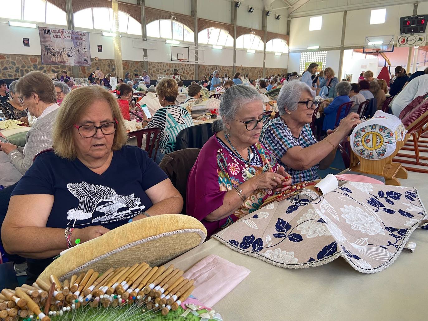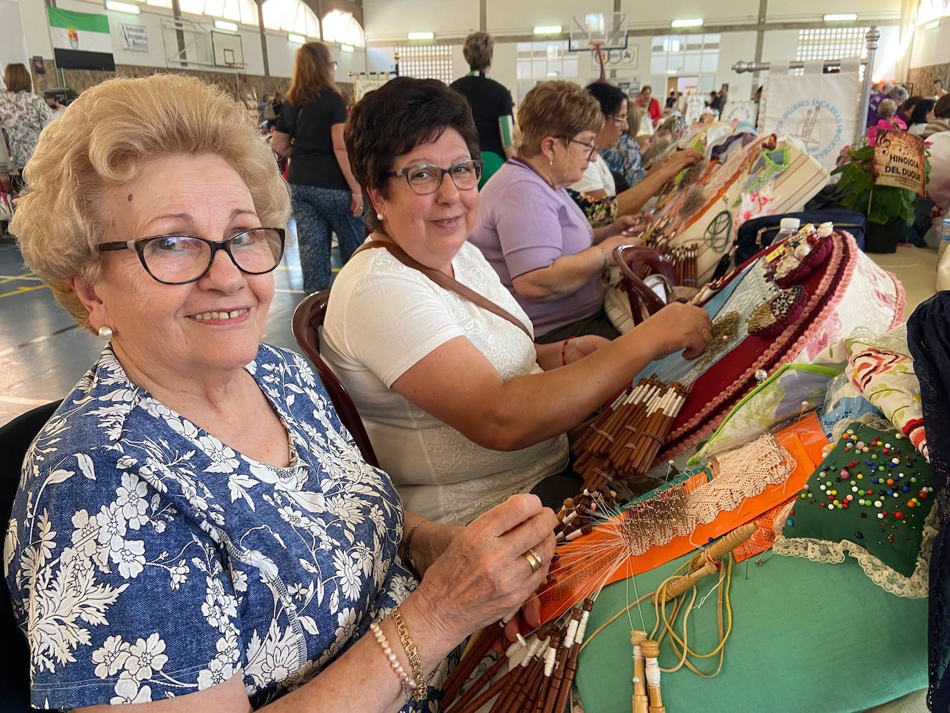En total, han acudido a la cita más de 300 artesanas del bolillo de dentro y fuera de la región, muchas extremeñas, pero también encajeras venidas de Andalucía.