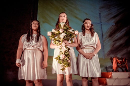 Tampoco falta en la representación el acompañamiento de la música, una música expresamente compuesta por David Álvarez e interpretada por una orquesta de unos dieciséis músicos. A ello se suman las intervenciones cantadas del coro compuesto por mujeres de la localidad que recordarán los fragmentos textuales conservados a lo largo de los años en Palomas, patrimonio cultural de incalculable valor. Sánchez Adalid realizó una investigación histórica y cultural sobre los orígenes del Paso de la Cruz y halló un texto dramático de 1715 escrito en México por el sacerdote Manuel de los Santos, que escenificaba las vicisitudes de Santa Elena en busca de la Santa Cruz, y que correspondería al auto sacramental representado tradicionalmente en Palomas. Con los materiales fruto de su indagación, el novelista extremeño armó el texto que se representa en la localidad por segundo año consecutivo.