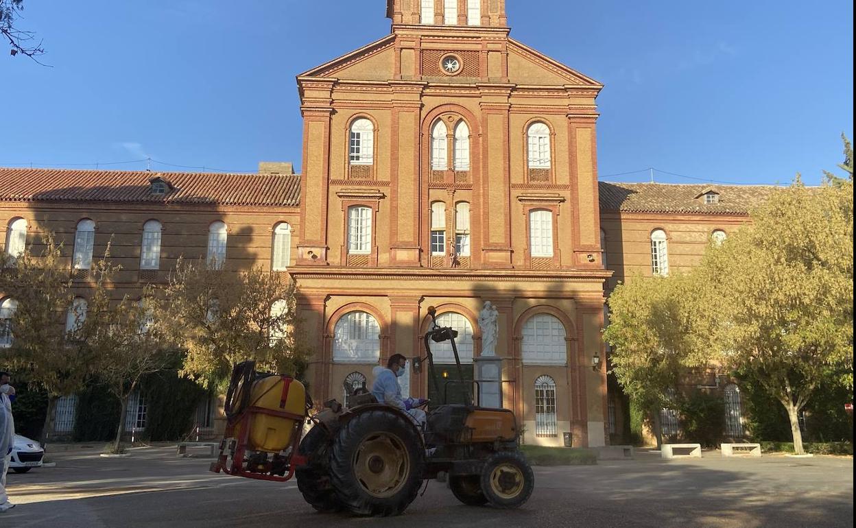 Cerca de veinte agricultores voluntarios desinfectaron ayer los centros educativos