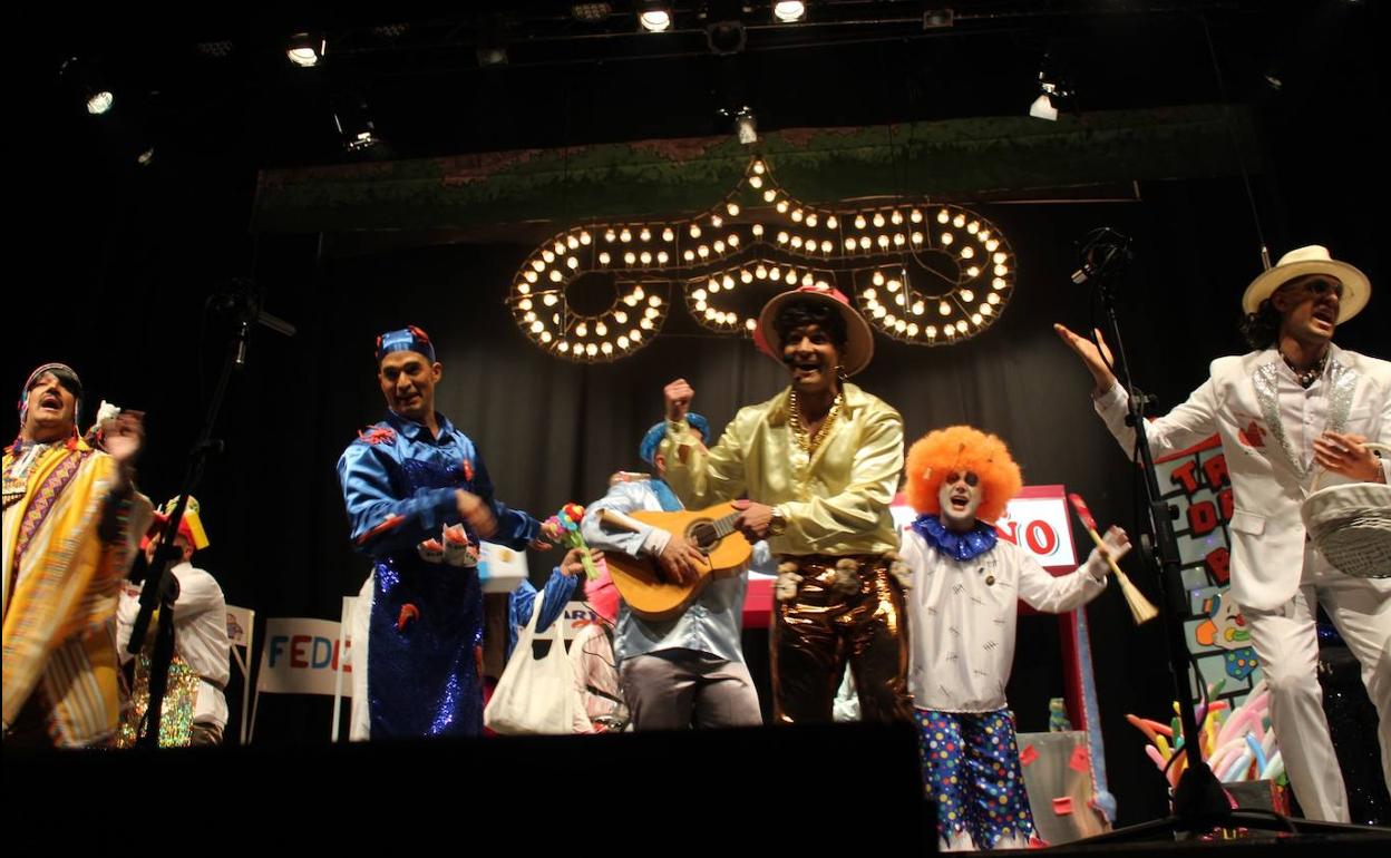 En total, siete agrupaciones (cuatro chirigotas y tres comparsas), ofrecieron humor, color y sentimiento desde el escenario del Teatro-Cine Festival
