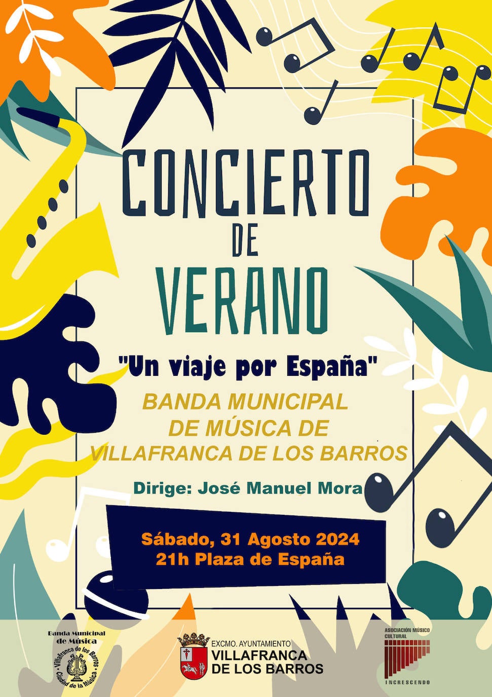 Este sábado 31 de agosto a la 21.00 horas en la Plaza de España de Villafranca de los Barros, la Banda Municipal de Música de la localidad ofrecerá su segundo concierto de verano.