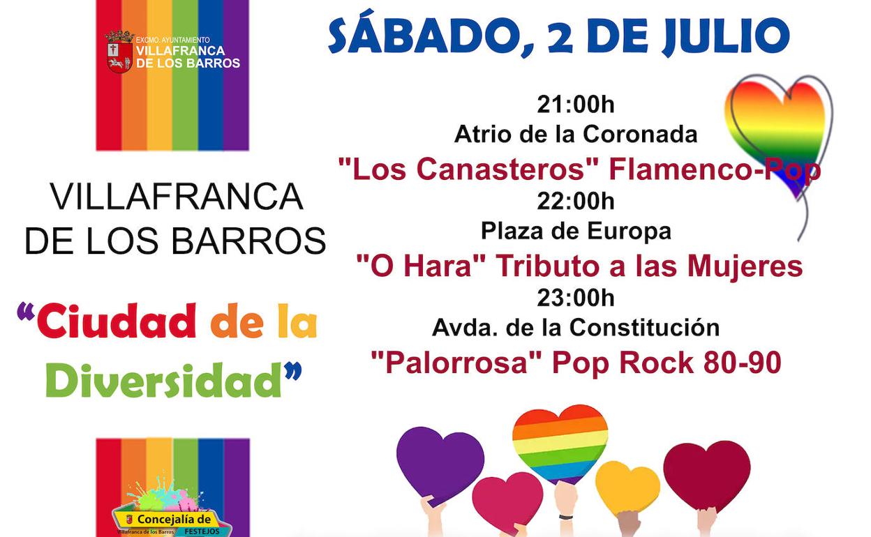 Desde la Delegación de Festejos del Ayuntamiento de Villafranca de los Barros, se ha preparado un programa para celebrar este día, el cual se llevará a cabo el próximo sábado 2 de julio. «Una de las reivindicaciones del Día del Orgullo Gay es no ser excluyente con nada ni con nadie, por ello queremos llevar esta celebración por las distintas barriadas de nuestra localidad, haciendo de esta forma participe a toda Villafranca de este día y de la necesidad de apoyar a estos colectivos que son juzgados por sus tendencias por personas retrogradas que viven en el pasado, y muestran sus nulas perspectivas de futuro».