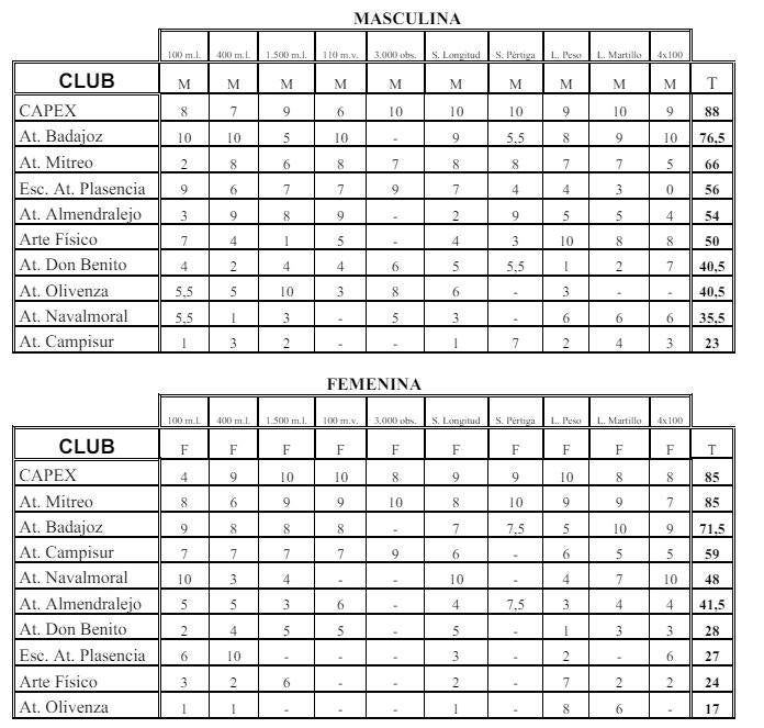 El pasado día 20, en las instalaciones del Centro Nacional de Tecnificación Deportiva en la ciudad de Cáceres, tuvo lugar la jornada de la Liga extremeña de clubes en pista.