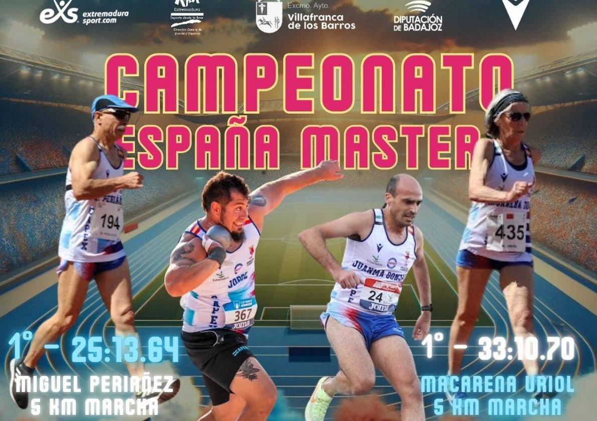 Hasta la ciudad madrileña se desplazaron los marchadores Miguel Periáñez y Macarena Uriol, el obstaculista Juan Manuel González y los lanzadores Miguel Lázaro y Jorge Gras, para competir y disfrutar del Campeonato de España Master, al que solo acceden los mejores que alcanzan las marcas del país que consiguen las mínimas de participación. Períañez y Macarena, volvieron a brillar, una vez más con la consecución de un nuevo oro y proclamarse campeones de España en categoría M60 y F60 respectivamente. Gras obtuvo el subcampeonato en lanzamiento de peso M35 y Juanma el cuarto puesto en los 3.000 m. obts. M35.