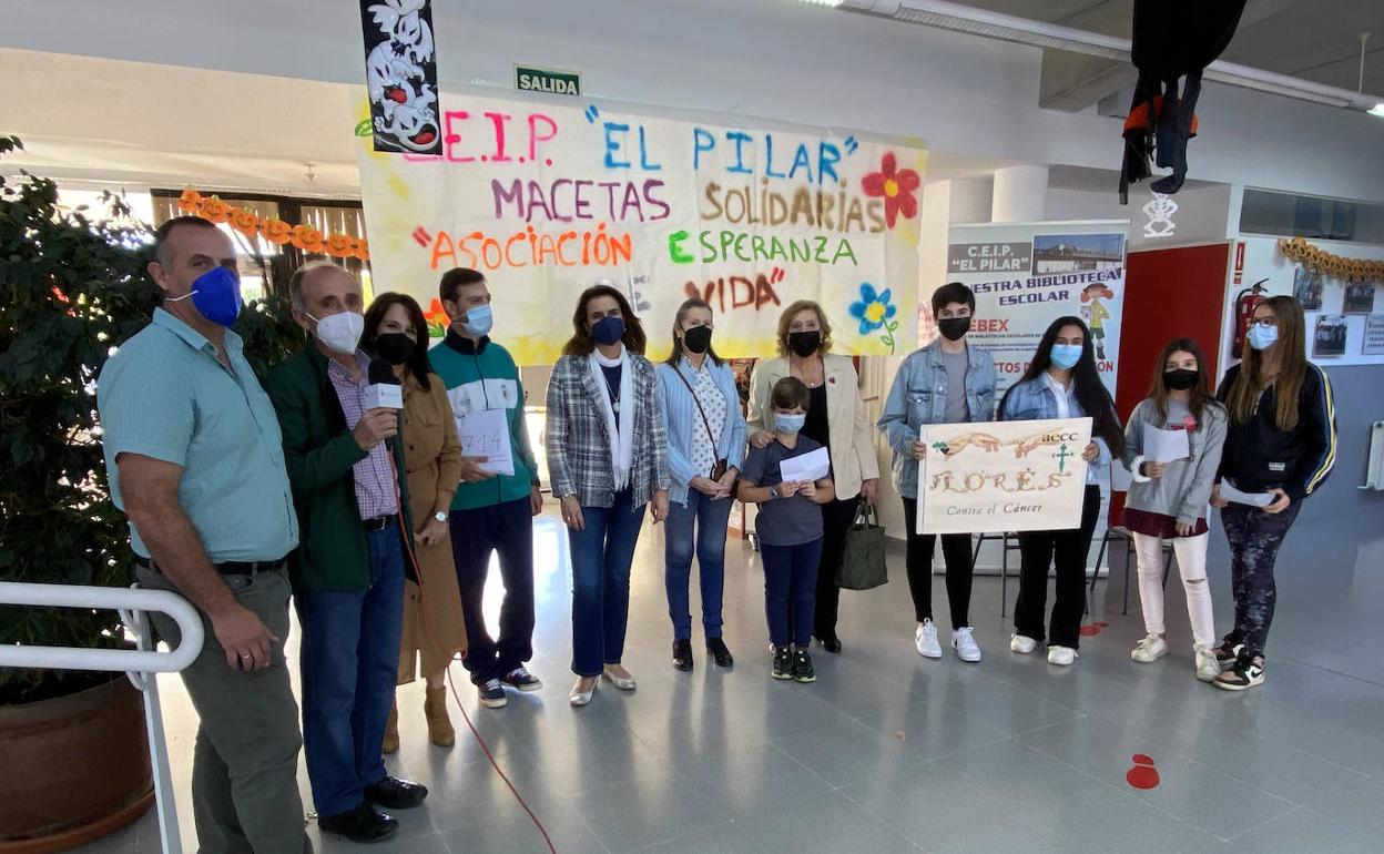 El pasado 19 de octubre, Día Internacional contra el Cáncer de Mama, vendieron, en la puerta de estos cuatro centros educativos, plantas donadas para tal fin. Lo recaudado, 2.714 euros, lo entregaron esta semana representantes y alumnos de los cuatro centros a 'Esperanza de Vida'. Su presidenta, Amparo Franganillo, agradeció el esfuerzo de profesores, padres, madres, abuelos, alumnos y vecinos que han contribuido a que la actividad haya sido un éxito. Explicó que irá destinado a asociaciones que trabajan en la investigación para erradicar esta enfermedad.