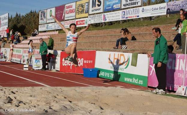 La soleada tarde del sábado no pudo comenzar mejor, porque la atleta emeritense del CAPEX, Lucía Sánchez Aranda, hizo una marca de 12'16 metros en triple salto, con lo que batía el récord de Extremadura de la prueba y se convertía en la única mujer extremeña de la historia en pasar de los 12 metros en dicha prueba.