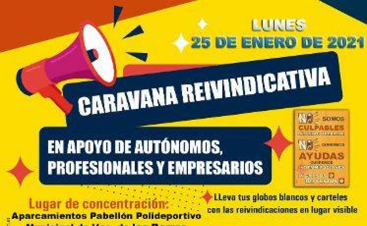 La asociación de Comerciantes de Villafranca convoca para mañana lunes, 25 de enero, una Caravana Reivindicativa en apoyo al pequeño comercio y a la hostelería a partir de las 11,00 horas y desde los aparcamientos del Pabellón Polideportivo Municipal. Allí leerán un manifiesto. Posteriormente, recorrerán, en coche, las diferentes calles de la localidad. Para ello, piden a los asistentes que acudan con globos blancos y carteles con las reivindicaciones en algún lugar visible del coche.
