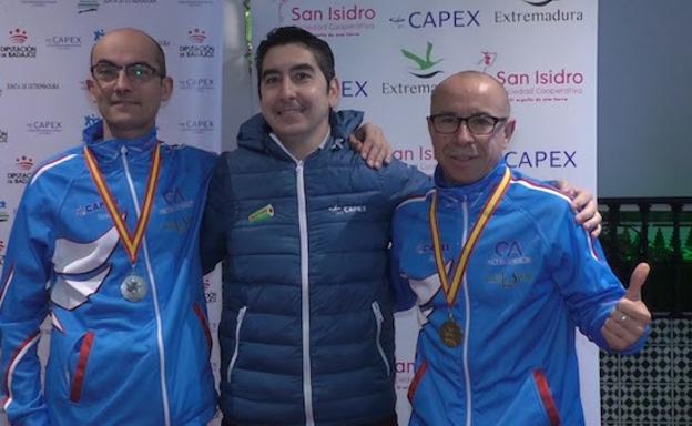 Los tres se mostraron satisfechos y emocionados por los logros conseguidos para el equipo. Así, el calamonteño Miguel Periañez consiguió una medalla de oro, en categoría M-55, con una marca de 47'57''. mientras que el almendralejense Francisco Parra, que debutaba, la de plata en categoría M-40, con una marca de 50'01''.