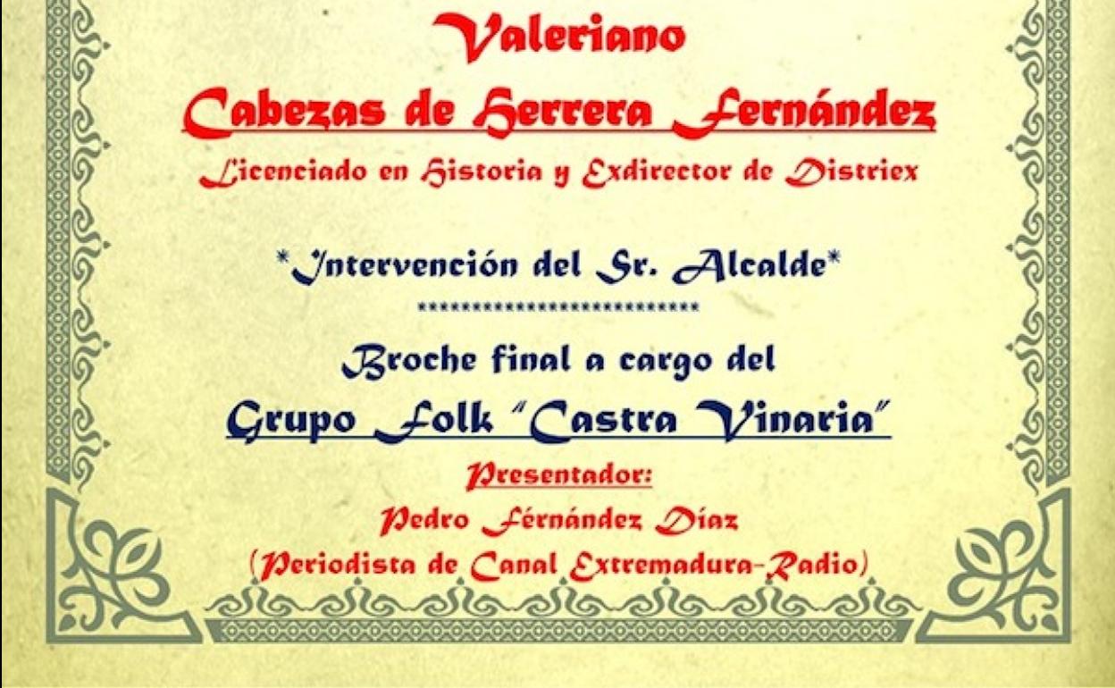 El presidente de la Asociación de Vecinos de la Coronada, Manuel Pinilla, dará la bienvenida antes del pregón a cargo de Valeriano Cabezas, en el salón de actos del CP Rodríguez Cruz
