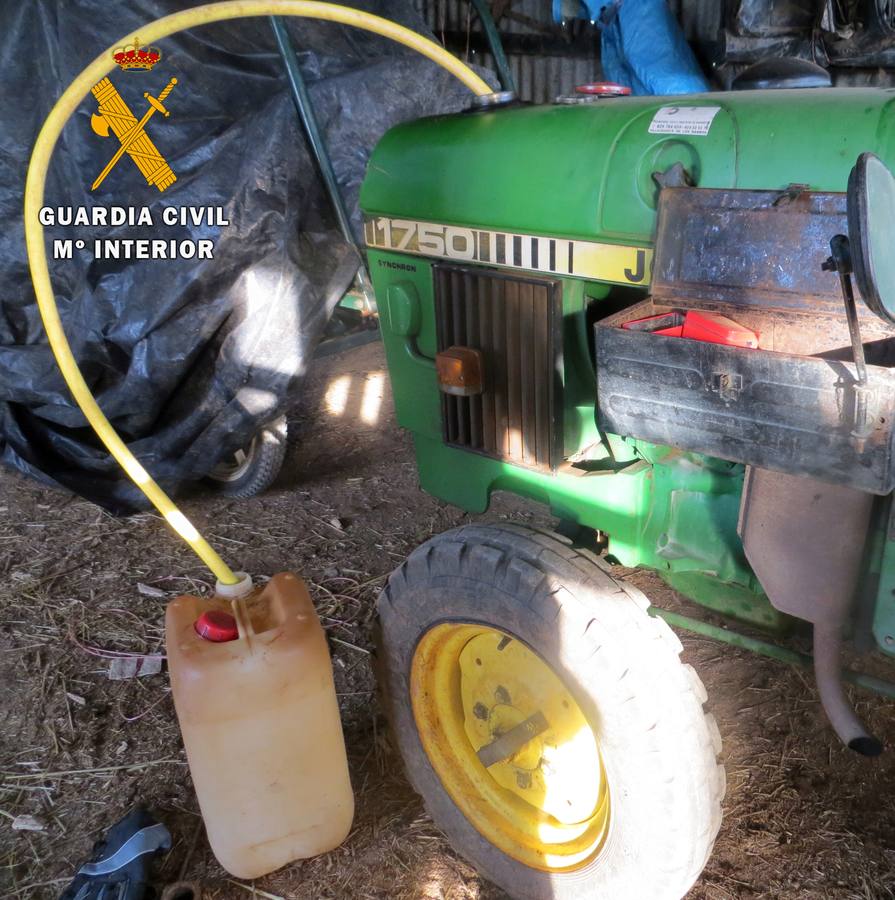 En el interior de la nave, los agentes observaron que para acceder a su interior forzaron los accesos de la misma. En su interior tenían apiladas diferentes herramientas y material agrícola que se disponían a robar. Además tenían una goma con la que pretendían sustraer el gasoil de un tractor de la citada explotación.