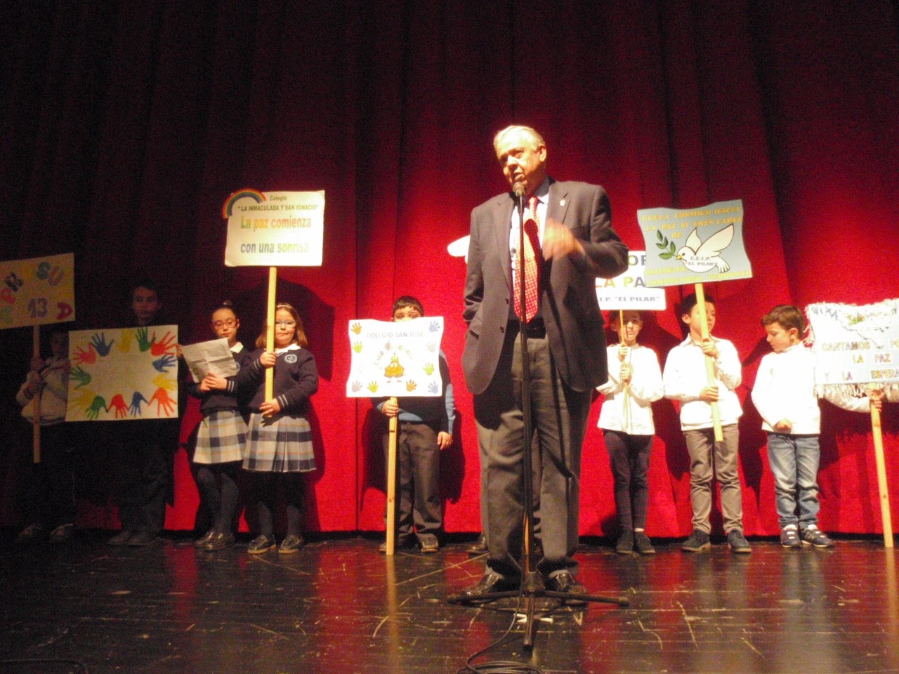 Los alumnos de 2º Primaria del Colegio San José, Jorge Masero y Marina Sánchez, dieron lectura al manifiesto por la paz que este año centró la celebración, al ser dicho centro el encargado de elaborar el manifiesto y leerlo.