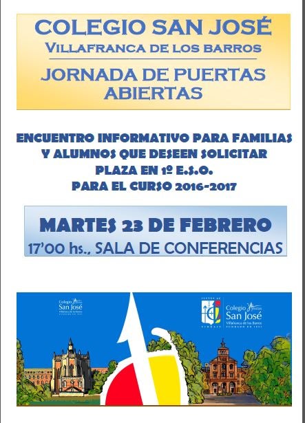 El Colegio San José anuncia unas jornada de puertas abiertas que se van a celebrar el próximo martes 23 de febrero por la tarde en ... las instalaciones del centro de la Compañía de Jesús Colegio San José.