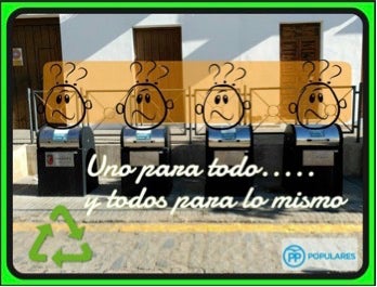 Desde el PP inciden, como ya hicieran el pasado año, en que los depósitos de residuos urbanos soterrados de la localidad no están identificados ni por colores, ni por carteles, provocando confusión entre los ciudadanos y, por tanto, no están siendo utilizados de la mejor manera posible. Un ciudadano no sabe dónde debe depositar los papeles, los plásticos, o los desechos de comida, no existe ningún cartel que lo indique.