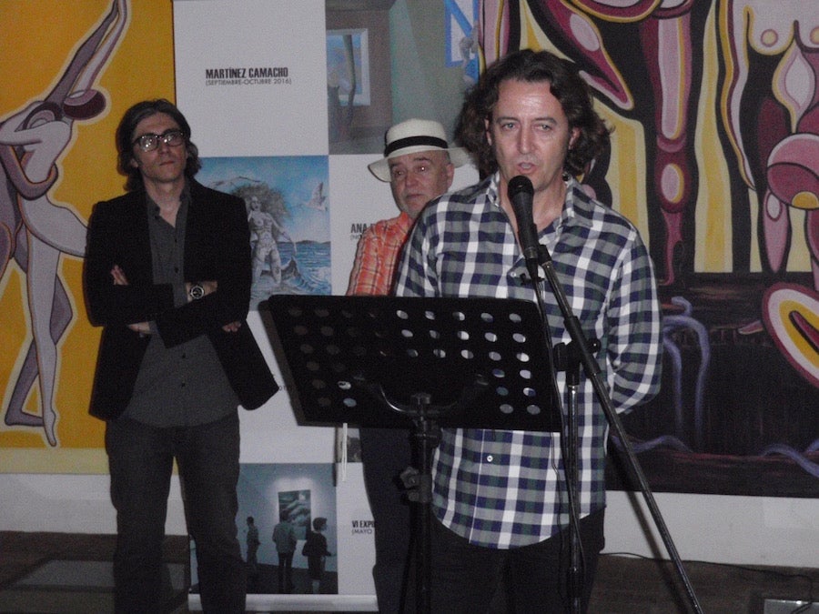 En la inauguración, además, participó el poeta Rafael Adolfo Téllez que, junto a otros escritores, han dado forma a los textos del catálogo y de la exposición de Martínez Camacho, y realizó una lectura poética del texto 'Adiós a Turróbriga' (poema a las pinturas del artista sevillano).