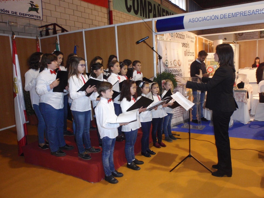 El acto de inauguración de Expobarros 2016 finalizó con la interpretación del Himno de Extremadura a cargo de la Escolanía de la Escuela Municipal de Música, bajo la dirección de Verónica Rivera y el acompañamiento de Isabel López al piano, seguida de una visita guiada de autoridades y acompañantes por los distintos stands de la Ciudad Deportiva de Villafranca.
