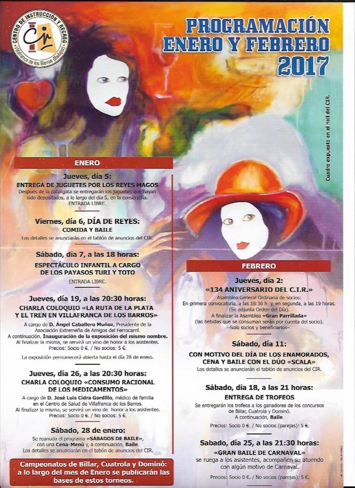 Ya está en la calle la nueva programación del Centro de Instrucción y Recreo para los dos primeros meses del año 2017.