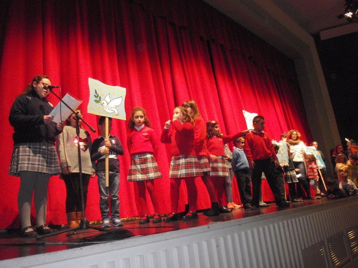 El acto se inició con un bonito y significativo cuentacuentos titulado 'El planeta de los mimos', tras lo cual se produjo la actuación de un grupo de alumnas del colegio La Inmaculada y San Iganacio, y a continuación se efectuó la presentación sobre el escenario de los representantes de cada centro. Posteriormente, la alcaldesa infantil, Paula dos Santos, del Colegio San José, fue la encargada de leer un manifiesto por la Paz y la No Violencia, y el alcalde Ramón Ropero se dirigió con un saludo a todos los escolares para pedirles que actuén siempre de acuerdo a los principios que marcan el respeto y el cariño a nuestros padres y educadores.