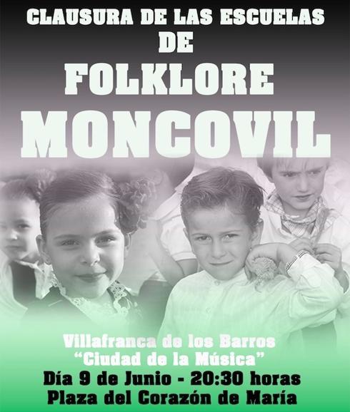Hoy, viernes día 9 de Junio a las 20.30 horas, la plaza del Corazón de María de Villafranca acogerá un año más la clausura de las escuelas de folklore de la Asociación Cultural y Folklórica Moncovil.