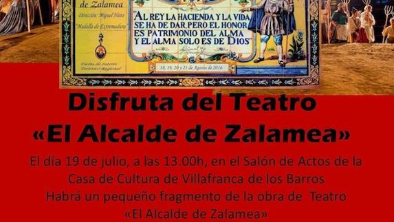 El pasado miércoles 19 de julio, tuvo lugar en el Salón de Actos de la Casa de Cultura el acto de presentación de la XXIV ... edición de la obra 'El alcalde de Zalamea', un montaje teatral que se celebrará los días 17, 18, 19 y 20 de agosto en Zalamea de la Serena. Durante esos cuatro días 729 vecinos de la localidad participan en el montaje de la obra para transportarnos a pleno Siglo de Oro.