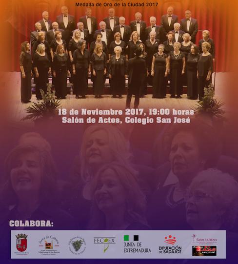 El Colegio San José acoge una año más el Certamen Internacional de Corales Tierra de Barros, que en su XXIII edición participarán cinco agrupaciones corales, ... entre ellas la Coral Santa Cecilia de Villafranca, organizadora del mismo. La cita es en la noche de mañana sábado 18 de noviembre, a partir de las 19 horas en el salón de actos del colegio San José, y cuenta con el patrocinio del Ayuntamiento de Villafranca, la Federación Extremeña de Corales, la Junta de Extremadura, la Diputación de Badajoz y las cooperativas San Isidro y San José de Villafranca de los Barros.
