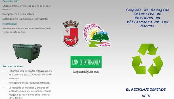 En marcha la Campaña de Recogida Selectiva de Residuos en Villafranca de los Barros