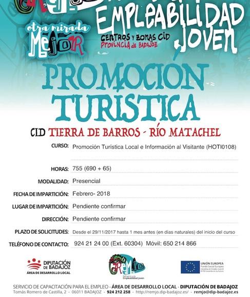 En Villafranca de los Barros la primera de las acciones formativas que se llevará a cabo será la de Promoción turística local e información al visitante con un total de 755 horas, a partir del mes de febrero.