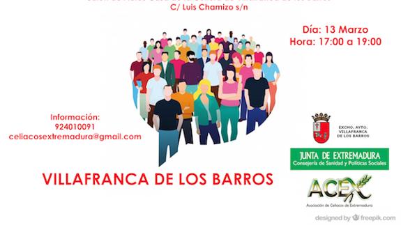 La concejal delegada de Servicios Sociales del Ayuntamiento de Villafranca de los Barros, Pilar Carrillo domínguez, ha anunciado que el próximo martes, día 13 de ... marzo, tendrá lugar en el salón de actos de la Casa de Cultura, una charla sobre la enfermedad celíaca y dieta sin gluten, ofrecida por parte de la Asociación de Celíacos de Extremadura. Dará comienzo a las 17 horas y se extenderá hasta las 19 horas.