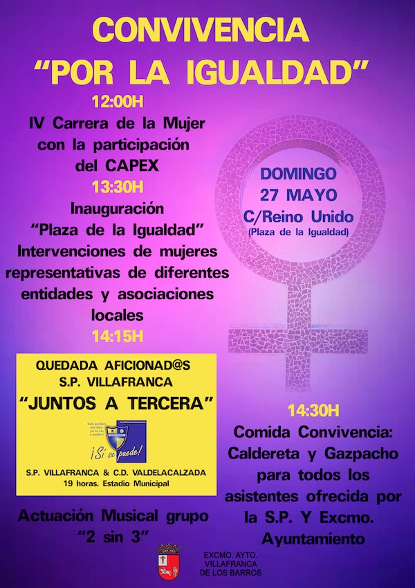 Villafranca acoge el domingo una convivencia 'por la igualdad', con la inauguración de la 'Plaza de la Igualdad'