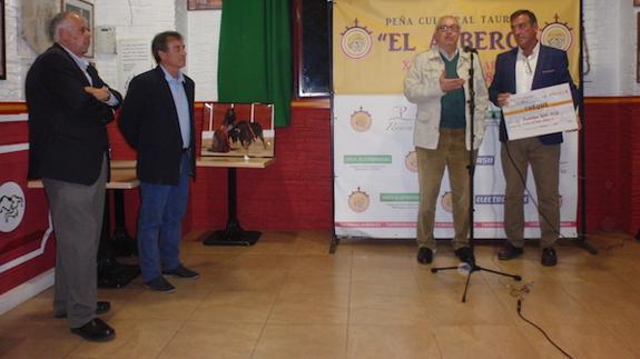 La sede de la Peña Cultural Taurina acogió el acto de entrega en el que estuvieron presentes el Superior de la Compañía de Jesús en Villafranca, Pedro Armada, el alcalde de Villafranca, Ramón Ropero, el torero homenajeado Luis Reina y el presidente de la peña taurina Baltasar Manzano