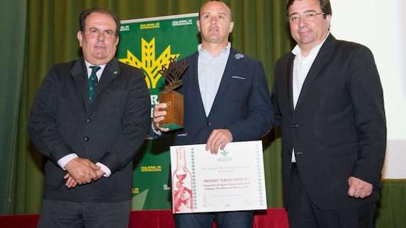 El alcalde de Villafranca mostró su satisfacción por ser Villafranca la localidad elegida para la entrega de estos premios y elogió la figura de Luis Cumplido, invitando a Vara y Monago a actuar conjuntamente para pedirle a la ministra de Agricultura para que interceda ante el presidente del Gobierno para que declare el proyecto de regadíos en Tierra de Barros de Interés Nacional.