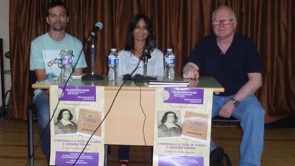 El salón de actos del IES Meléndez Valdés de Villafranca acogió la noche del pasado martes el acto de presentación de dos libros ('Sabiduría Perenne' ... y 'Comentario a la Ética de Spinoza'), cuyo autor es el filósofo villafranqués Juan Pedro Viñuela. En la presentación estuvieron la profesora de yoga, Estrella Castaño (profesora de Ágora), y el profesor de Educación Primaria, Álvaro Rodríguez.