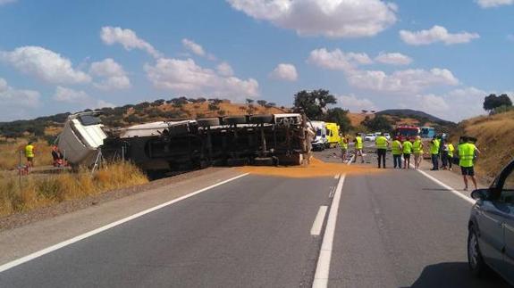 El siniestro se registró en torno a las 15.30 horas en el kilómetro 66,600 de la carretera, a unos cuatro kilómetros de Zafra. En ese tramo se encuentra el cruce entre Los Santos de Maimona y Fuente del Maestre.