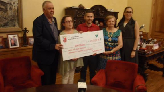 Esta mañana, la alcaldía de Villafranca ha acogido el acto de entrega de un cheque por importe de 4.125 euros, resultante de la recaudación del concierto de Soraya del pasado día 8 de septiembre en la Plaza de Toros de Villafranca más una pequeña aportación de los responsables de la barra, que ofreció la artista extremeña a beneficio de la Asociación de Madres contra la Droga (AMADROVI).