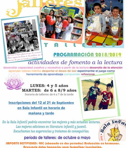 Ya se ha hecho pública la programación 2018/2019 de las actividades de fomento a la lectura de la Sala Infantil y Biblioteca Infantil de ... la Casa de la Cultura, según ha comunicado a esta redacción su responsable, Concha Morales, que ha dado conocer las inscripciones de cara al próximo curso, cuyo plazo se extenderá del 12 al 21 de septiembre en la propia Sala Infantil en horario de mañana y tarde.