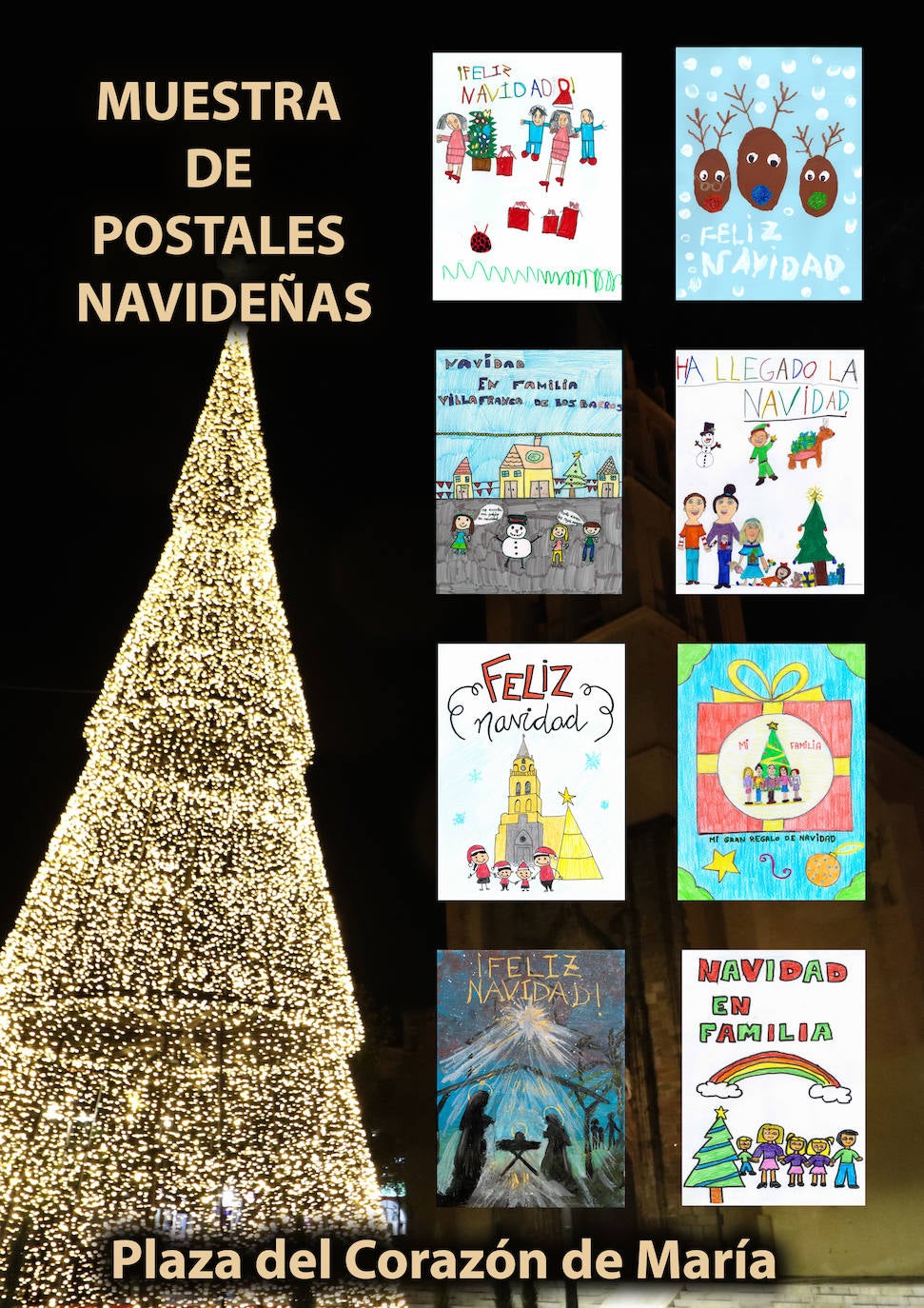 Mañana, 3 de diciembre, coincidiendo con el encendido de la iluminación de Navidad, se expondrán, en la Plaza del Corazón de María, las postales navideñas ganadoras realizadas por niños y niñas de todos los centros educativos de la localidad. Estas, han sido elegidas por cada centro.