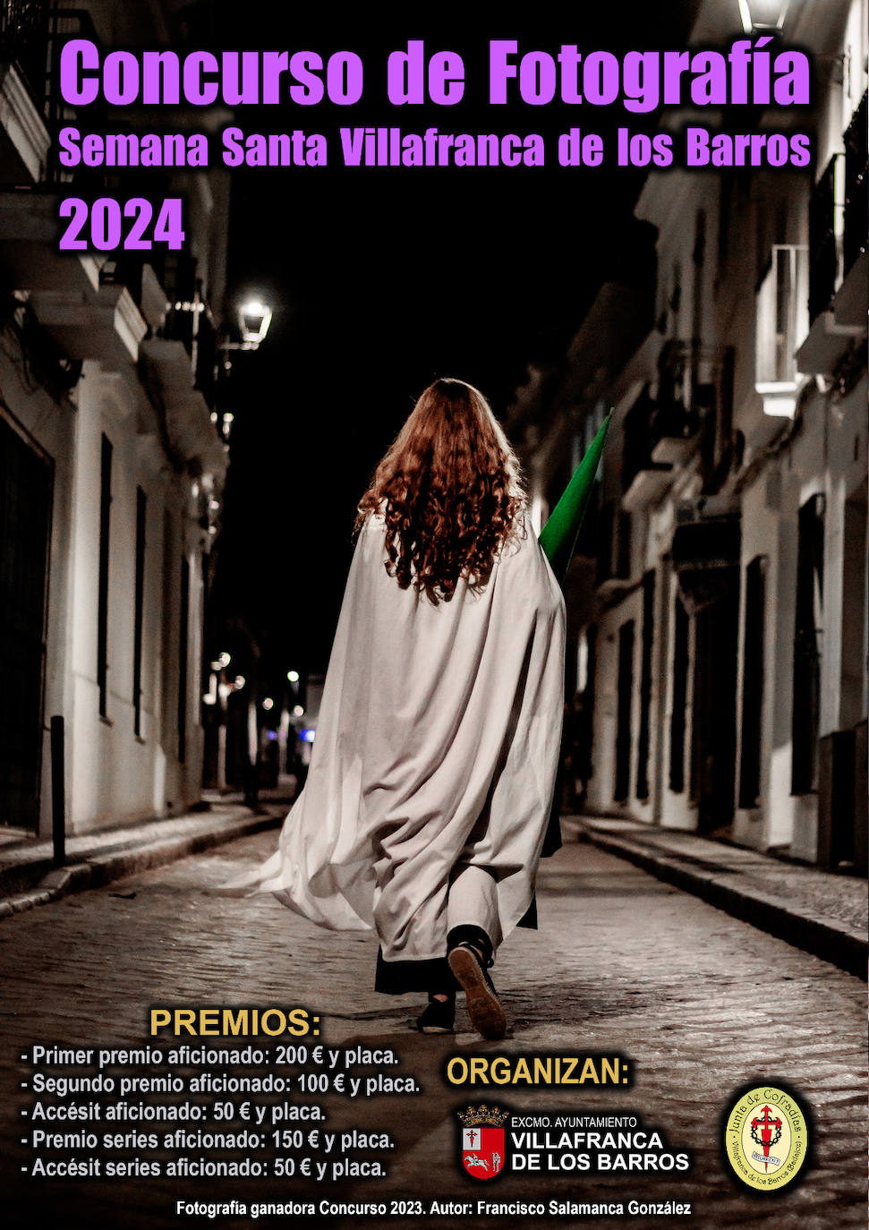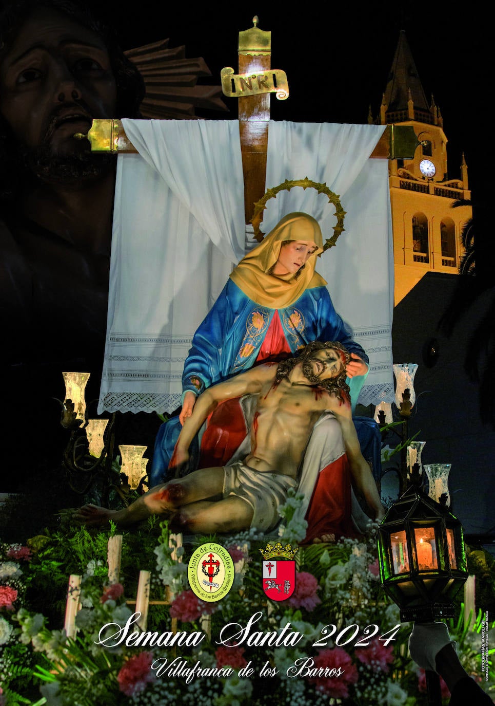 El cartel de la Semana Santa villafranquesa lo ha realizado Manoli GB editada por Imprenta Rayego. La imagen es Nuestra Señora de las Angustias, y en la esquina aparece el Padre Jesús Cautivo.