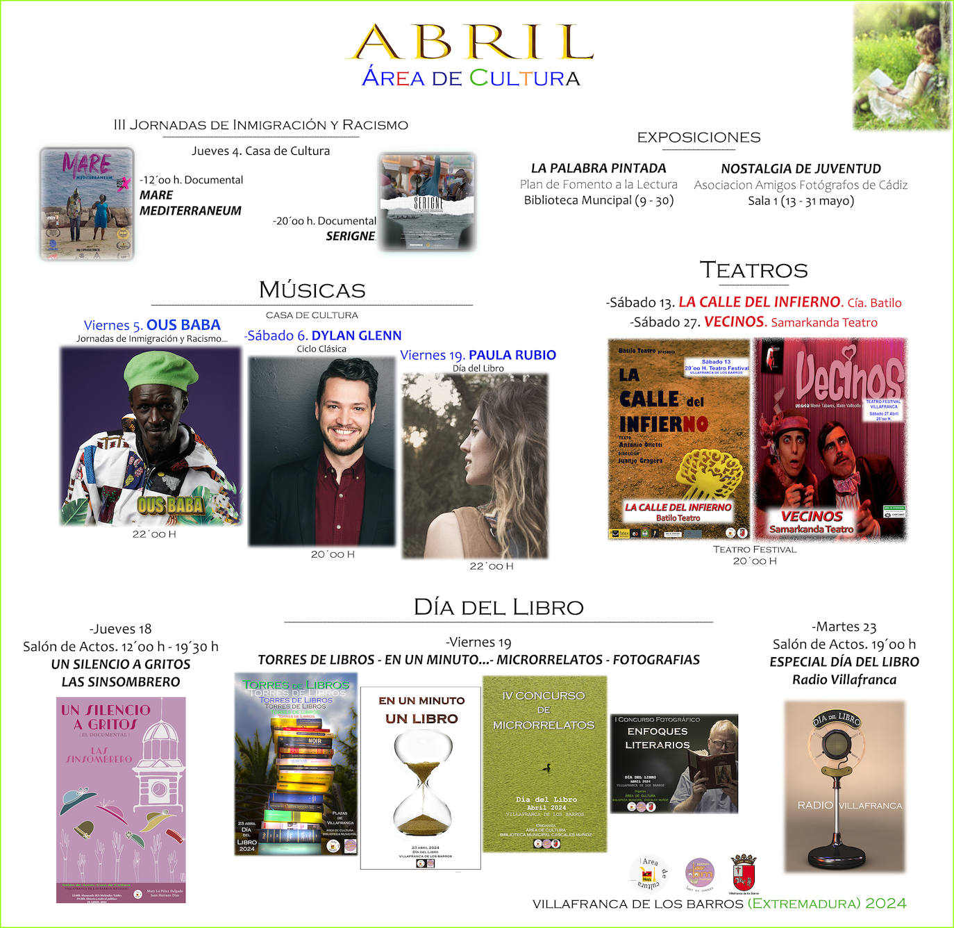 Y como decimos, el libro tendrá especial peso en este mes de abril ya que este 23 es su día. Por ello, el jueves 18 de abril en dos sesiones, a las .12.00 y a las 19.30 horas en la Casa de Cultura se proyectará el documental 'Un silencio a gritos, las Sinsombrero'. Realizado por Mary Ló Pérez Delgado y Juan Herruzo Díaz (Profesores del IES Maestro Domingo Cáceres de Badajoz).